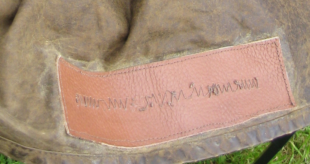 Now my brother says he can remember buying the coat with my father – they were both serious anglers – and he even helped to sew the patches on it, I  doubt this bit, but it might explain the distressing zig – zag stitched leather patch below.