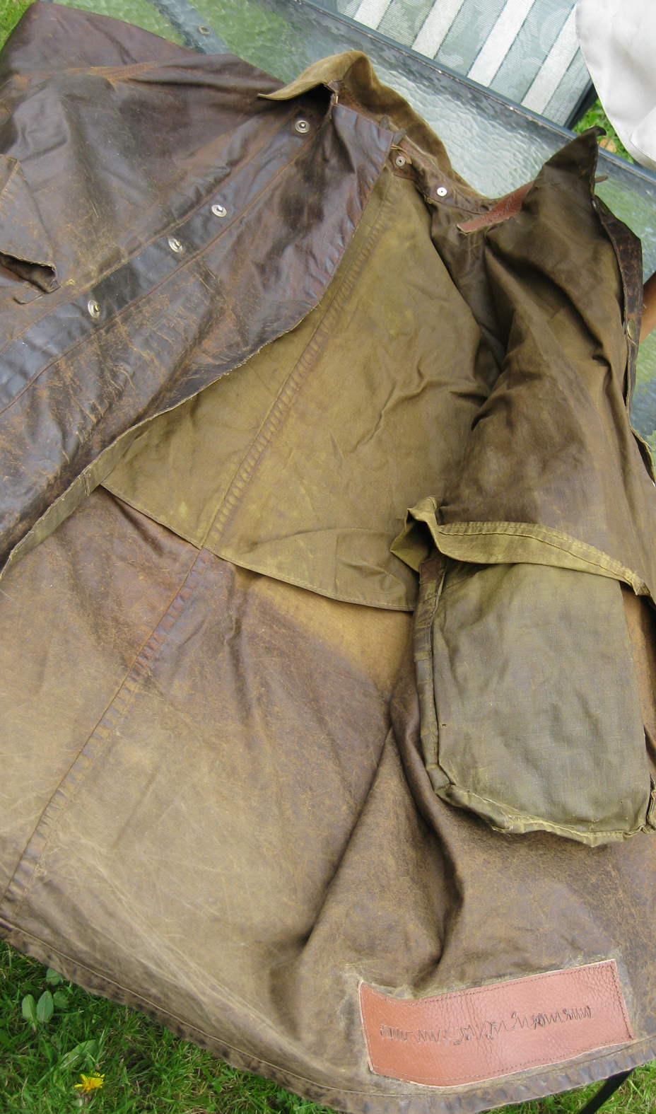 But as soon as I saw these pictures I could smell the coat, a sort of mixture of wet grass and fresh river fish combined with that strange sinus clearing smell of waterproofed cloth. Immediately I was back at home on the Wirral, and for an instant my father was before me…how weird – but as Jo remarks “the things you hang onto always seem to have a story behind them”