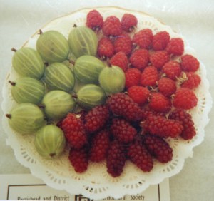 I then remembered that my mother used to win baskets of fruit at the local whist drives when I was a child. She would invariably come home with either a bottle of sweet sherry or more often a wonderful exotic basket of fruit. Well the basket was exotic, a large straw affair – what I now call a “lady basket” – which had to be given back the next week; it was always tied with a ribbon on the handle and the various fruits culled from village gardens were made valuable by the beautiful presentation –  a proper prize.
