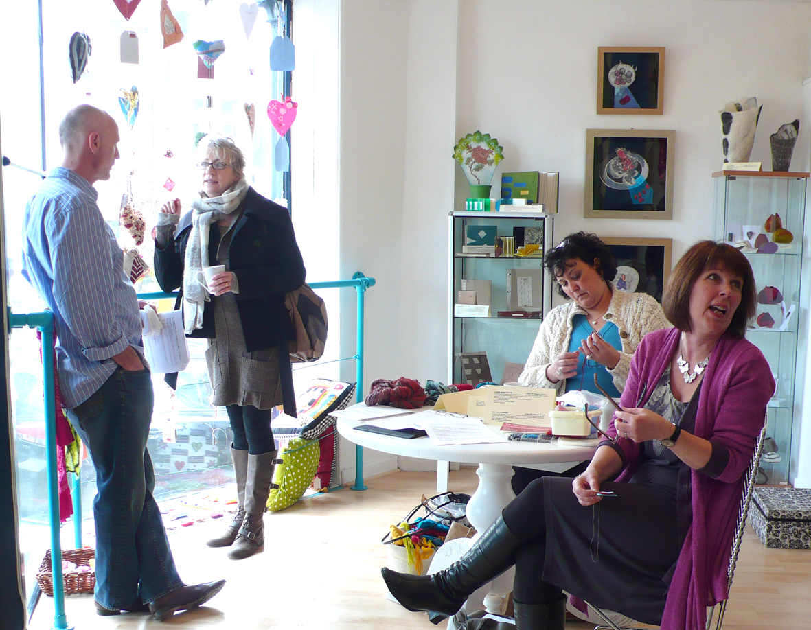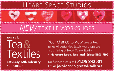 I decided to open this studio after I was asked several times by several people for drawing and stitching classes. So late last year I took the plunge and just 3 months later here we are at the opening day of our new venture – in what was a kitchen showroom and obviously, given the name, as close to Valentine’s day as possible.  Last Saturday, 12th February, saw us with the first studio space up and running. Most of the last few months have been stripping out and selling kitchens and bathrooms ripping up floors and wallpaper and applying for planning permission and then putting down floors, repainting and decorating and making timetables and buying signs and chairs and tables and tea urns and cups and having websites built and changing telephones and email addresses and NOT STITCHING.