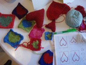 And last but not least, my temporary display of hearts from different people – this is being taken down today Valentine’s day, and shelving for the fabrics, yarns and ribbons will be put up – as inspiration and use for all the students of Heart Space Studios
