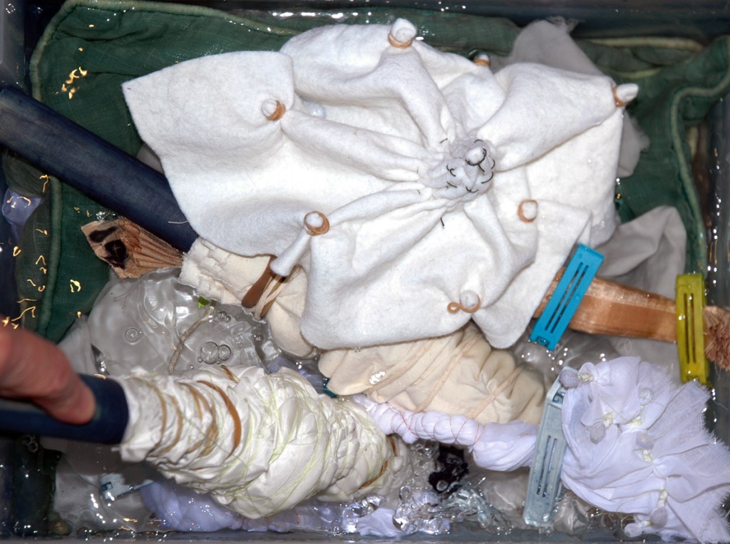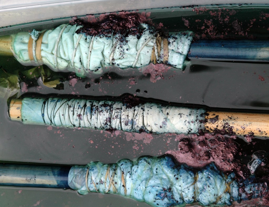 The fabrics were also being wrapped around tubes and tied in a seemingly random fashion – I could be wrong – it may have been very mathematical.