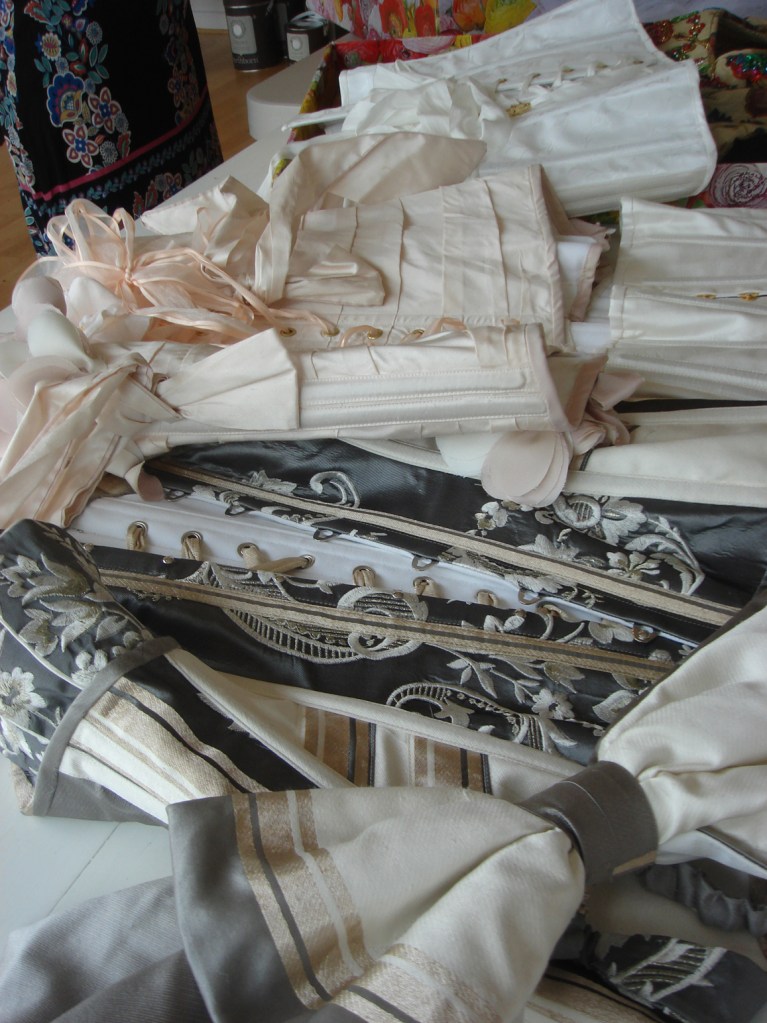I have never been very interested in corsets beyond museum studies, but last week I became totally entranced by them – why? because in to Heart Space Studios came an ex fashion student of mine, Lisa Keating, nee Best, and she brought the most ravishing selection of her bespoke corsets.