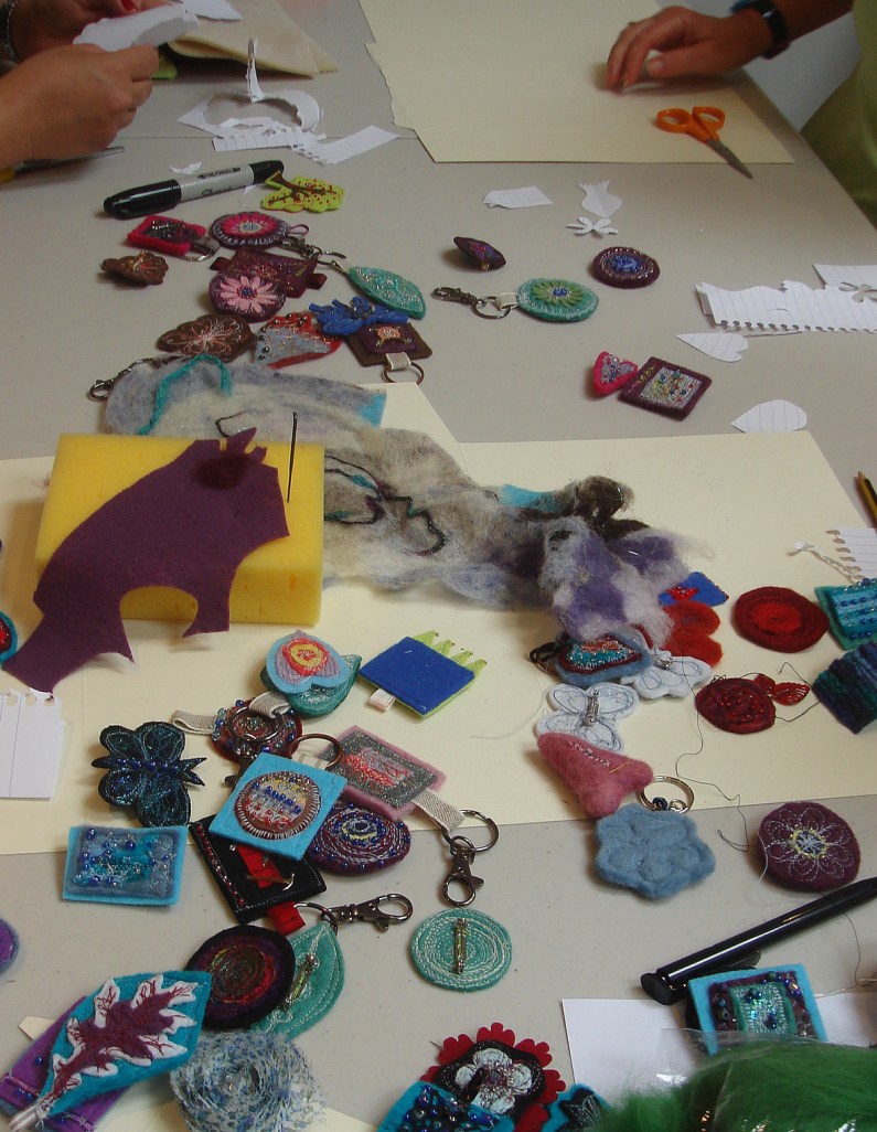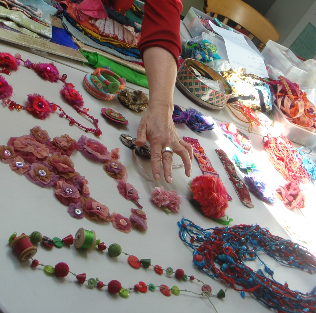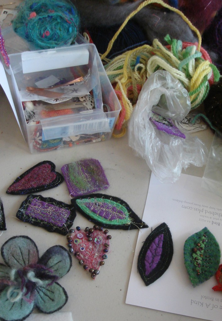 Other tutors make brooches out of recycled fabrics and threads, Debbie Bird always bring piles of lovely things to play with.