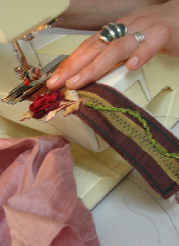 We have had so many interesting fabric jewellry classes at Heart Space Studios recently that I have decided to develop a fabric jewellry course for the autumn using all the jewellry tutors to take a class each. I got the idea from attending Teresa Searle’s workshop and even though I was the most talkative student I produced enough ideas to develop some old pieces of work to make fabric, enamel and beaded jewellery.