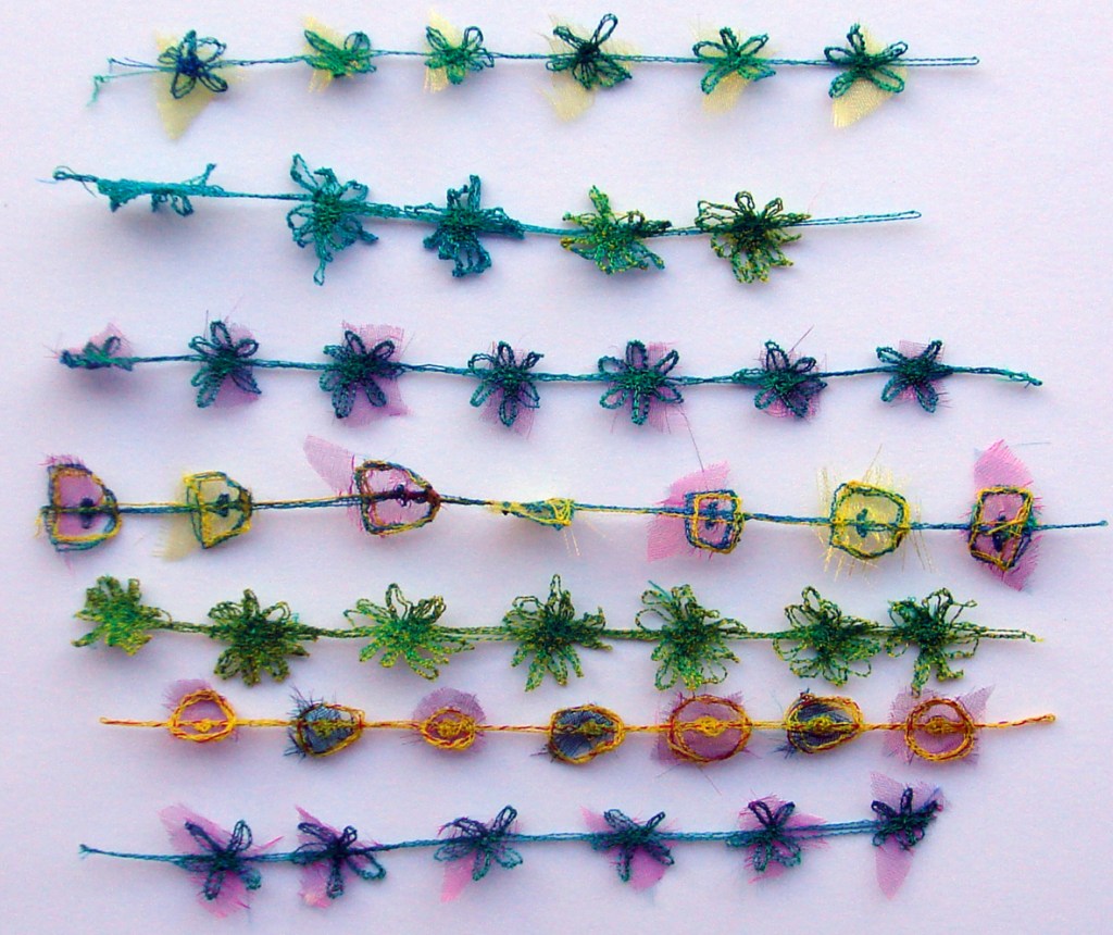 Jan Connet has made some lovely daisy chains for her workshop for machine embroidery using vanishing muslin
