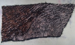 However back at the work-table I became fascinated by the edges of all the unfinished pieces: now I really get really iffy when people praise the incidentals about my work, they usually just love the back of the embroideries…..and here I was liking the edges of the material used for stretching