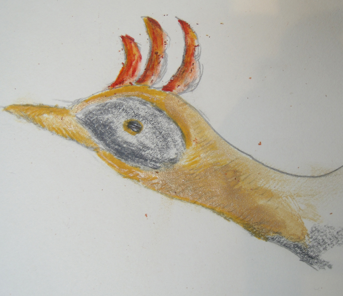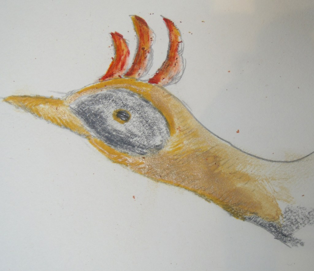 A change of media often results in a change of scale – see below the difference between pencil crayons and pastels. I often get students to experiment with scale to find out if they naturally draw big or small –  oh and the change of coloured ground makes a big difference as well – colours glow off black.