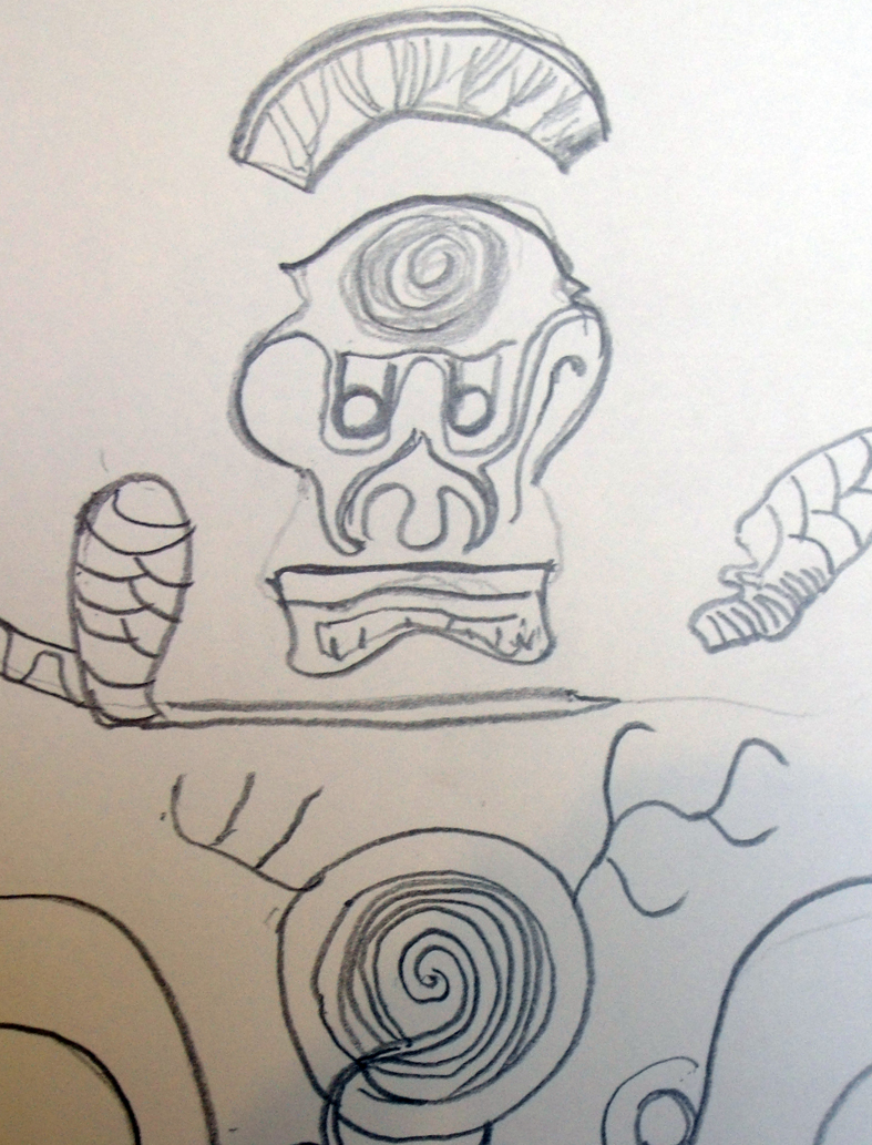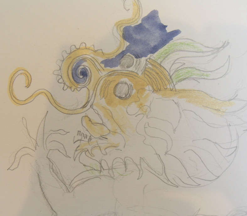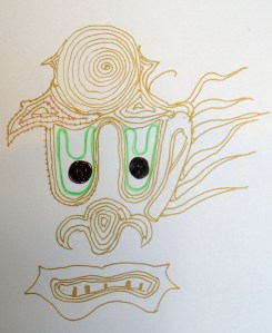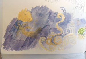 This often results in a change of focus and makes the subsequent line drawings much cleaner and concise, and not necessarily in pencil. The dragons were very popular. The drawings below have such a curious mixture of terror and comedy, the gold line drawing looks like a piece of graffiti – such energy and character.