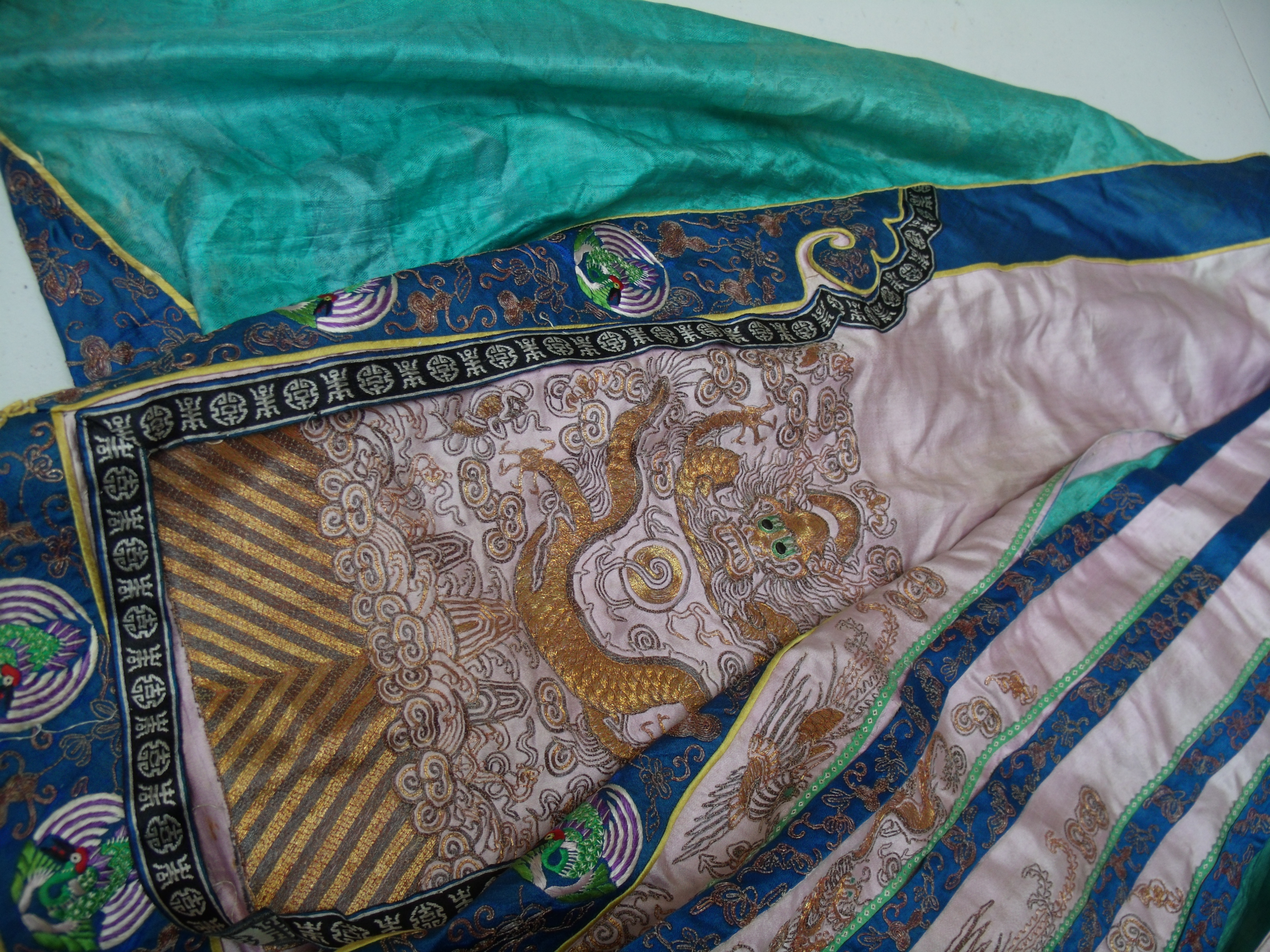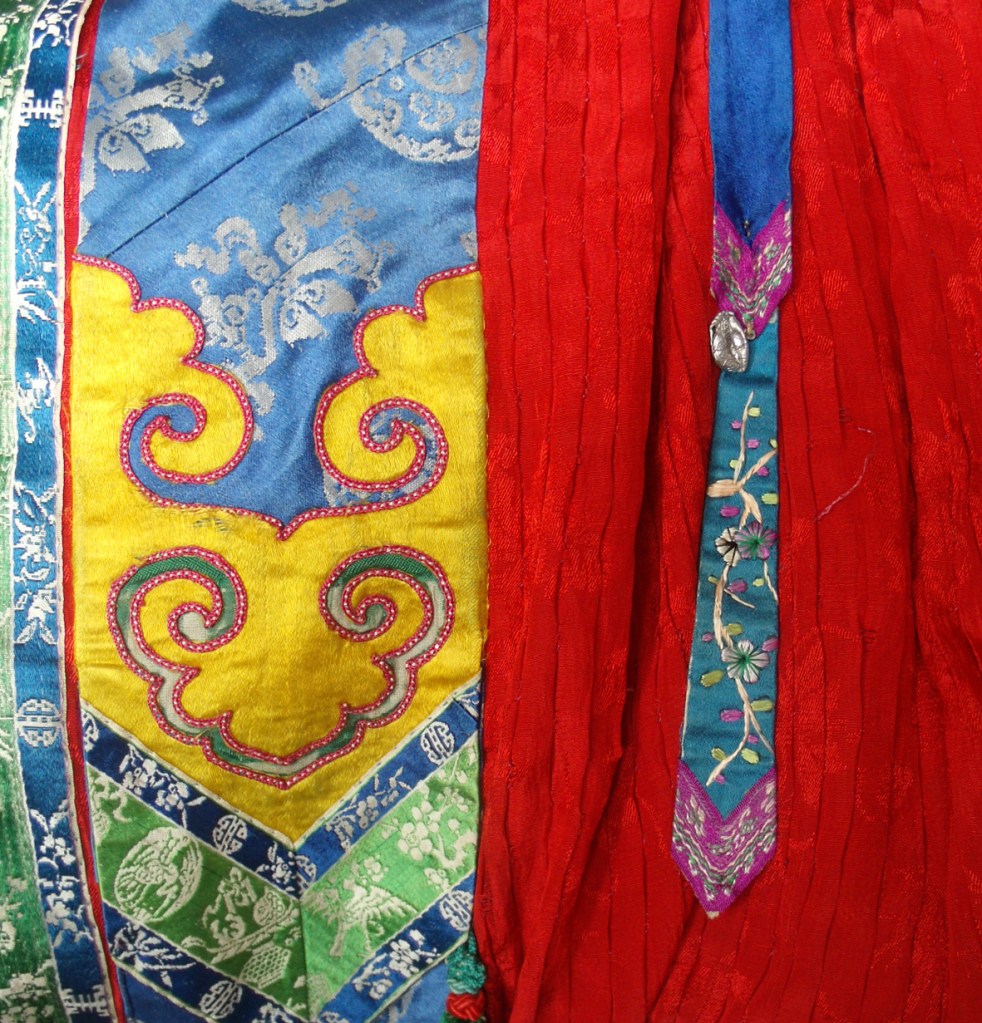 As you can see my collection is very old, very damaged but very beautifully coloured and embroidered. I have used the collection many times for drawing classes and students always find new ways to respond to these lovely old silk clothes.