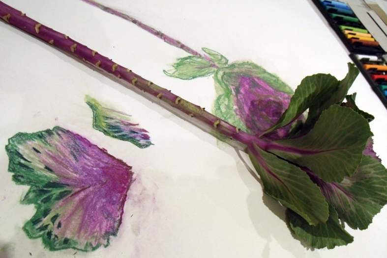 the drawing below really captures the strange colours and growth patterns of the cabbage…