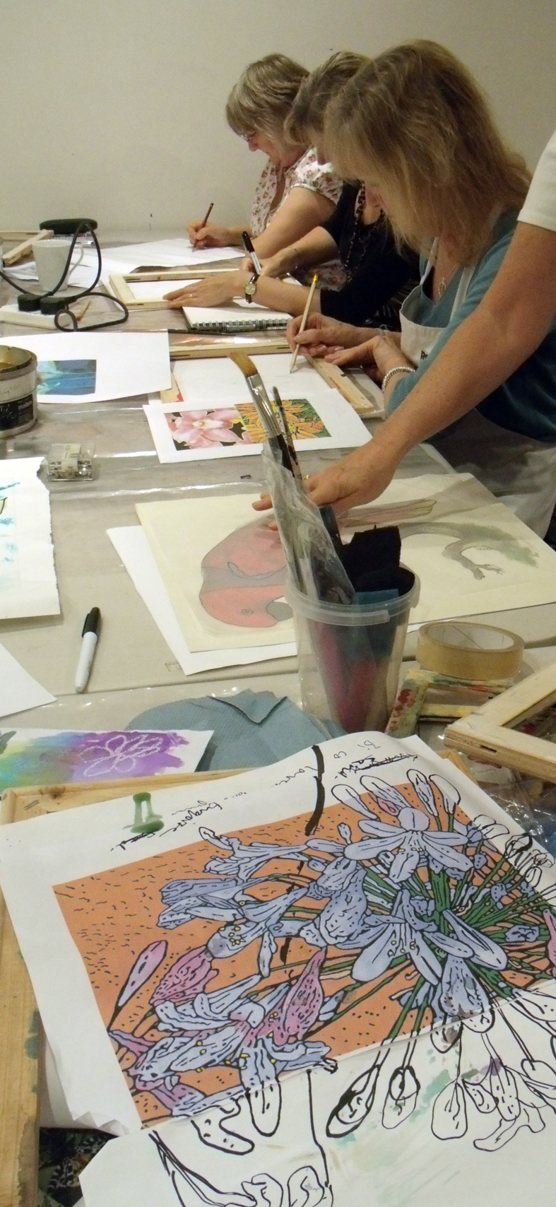 however once Debbie had explained how to set about developing a linear version of the images to enable drawing with a melted wax line, they soon got going to develop more interesting textile studies….