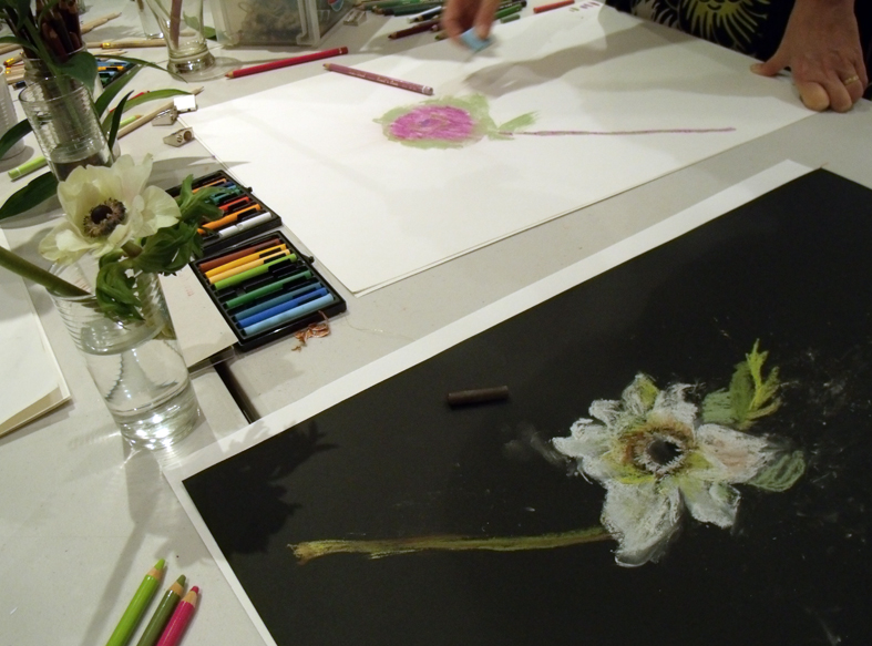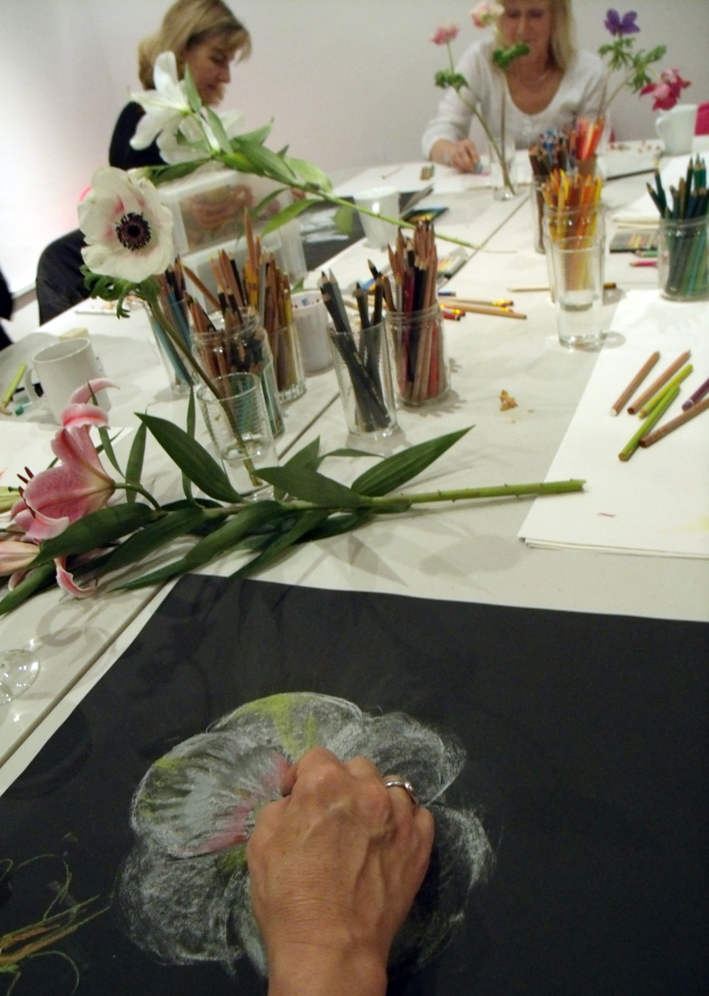 The idea was to give the members tasters with a view to developing a whole series of evening classes built specifically for them. I taught the first drawing class and the results were really inspiring, large and luscious drawing emerged for the close studies…
