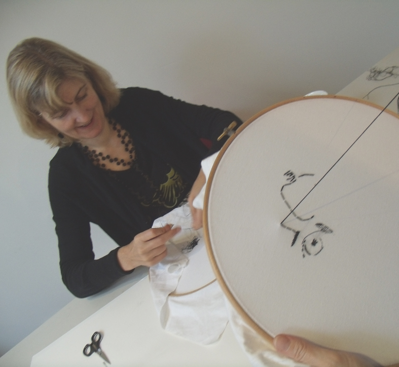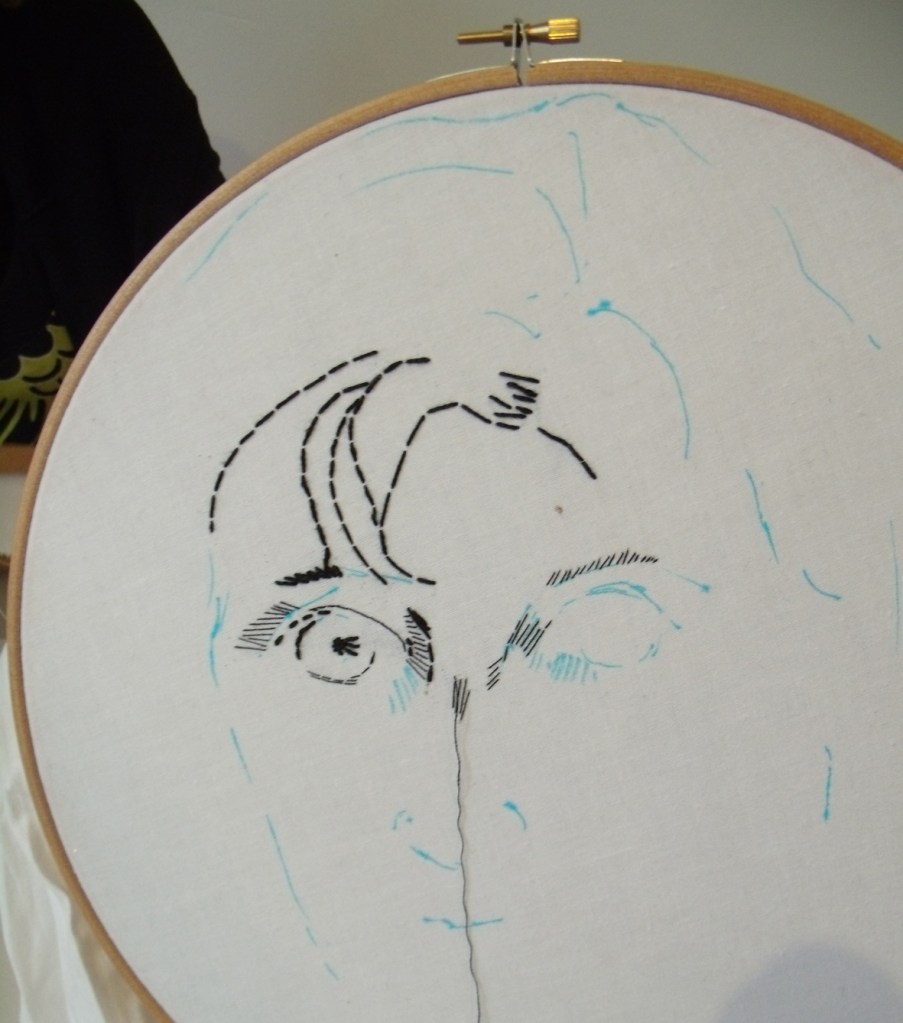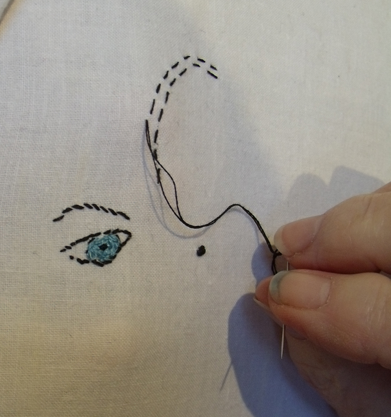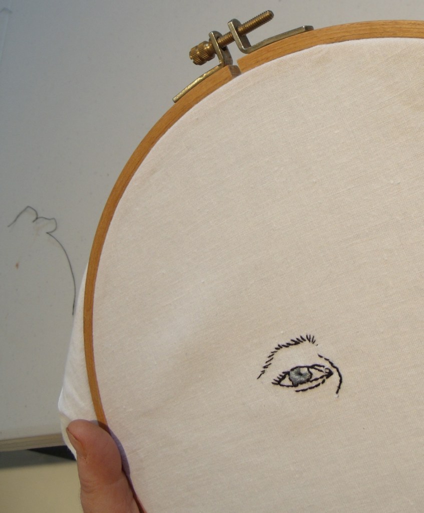 The in the afternoon session, something completely different, I started everyone stitching the eyeball but no drawing allowed only stitch – I am even stricter when I teach stitching.