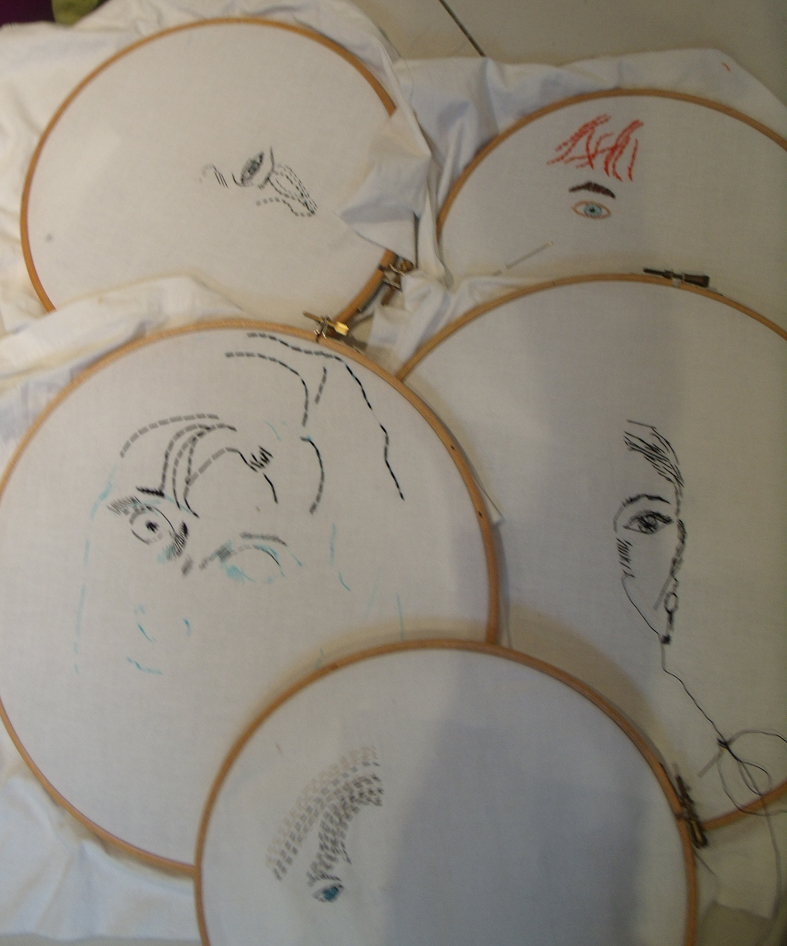 At the end of the day we had made a good start on the stitched work and several people vowed to finish them, I will post them later if they do. But I am interested in the variety of stitches applied to this exercise and I feel that some of the group could develop their own work using stitch – but I would think that wouldn’t I? In fact I would like to have another class that involved both of the day’s exercises on one portrait…maybe later in the year.
