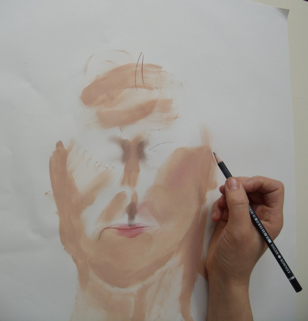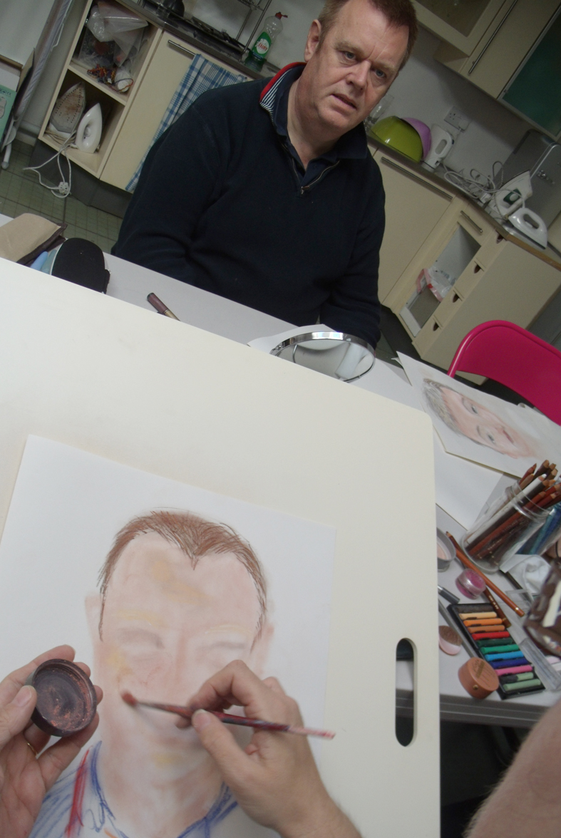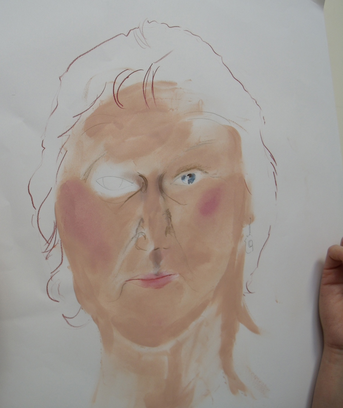 We started with self portraits….the difficulty for most women who are attuned to wearing make up is that they draw what they want to see, as if they are applying make up to the page for the same reasons they apply it to their own faces – to enhance themselves instead of using it as another drawing media.