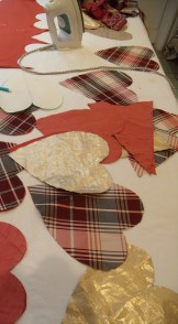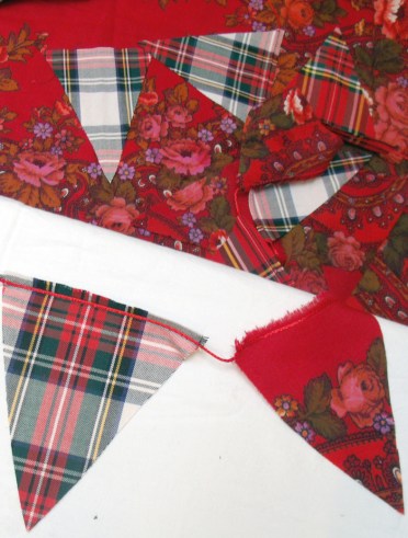 I didn’t bag-out the pieces but just cut them and left them, as they are cut diagonally to the straight grain they shouldn’t fray too much, and hey it’s only bunting…..I set about making 5 lines to sell.