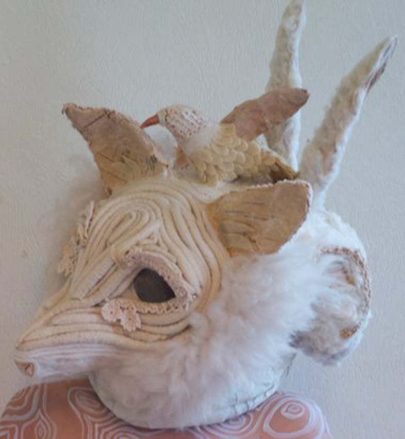 But, first things first – find the inspirational object – I always do this when starting something new, search for an image or a piece of fabric – anything that gives me lots of ideas or gives a very strong atmosphere…Sophie found it on Facebook in the guise of a head – an animal’s head, 3 animals in fact, by artist Jenni Joule, who brought wonderful things in to a meeting about a month ago – we were away, a spooky-wooky frozen forest
