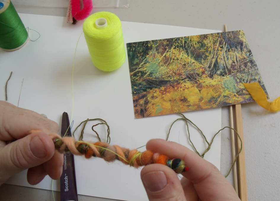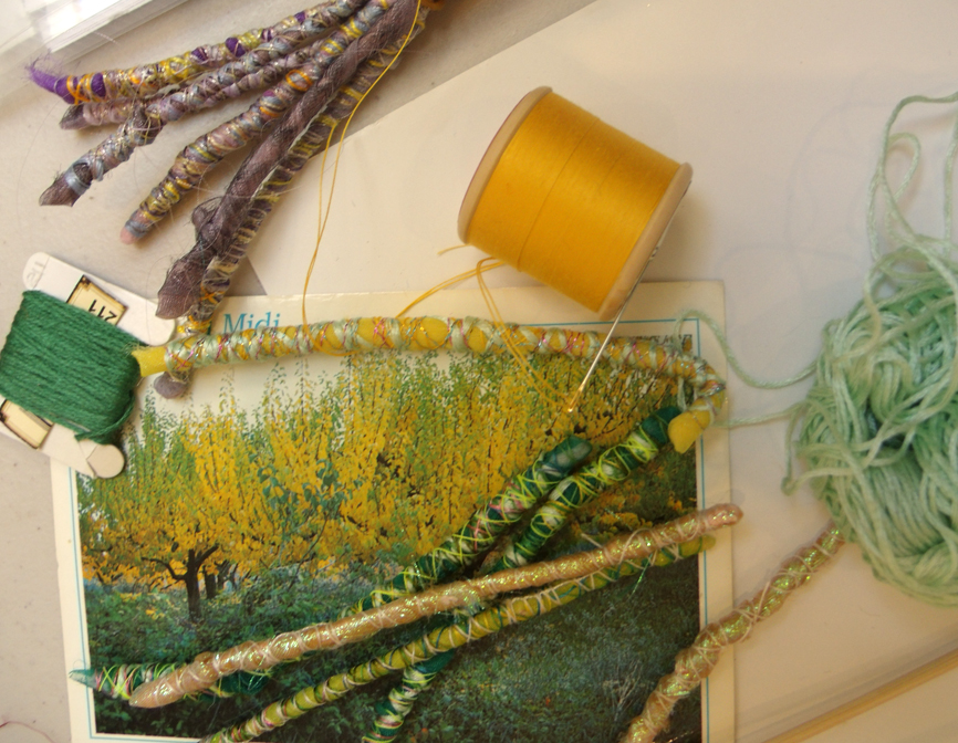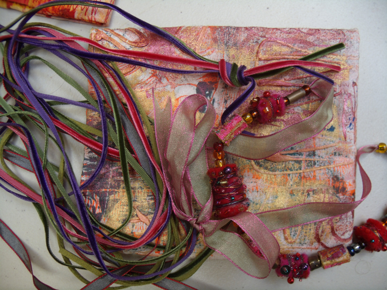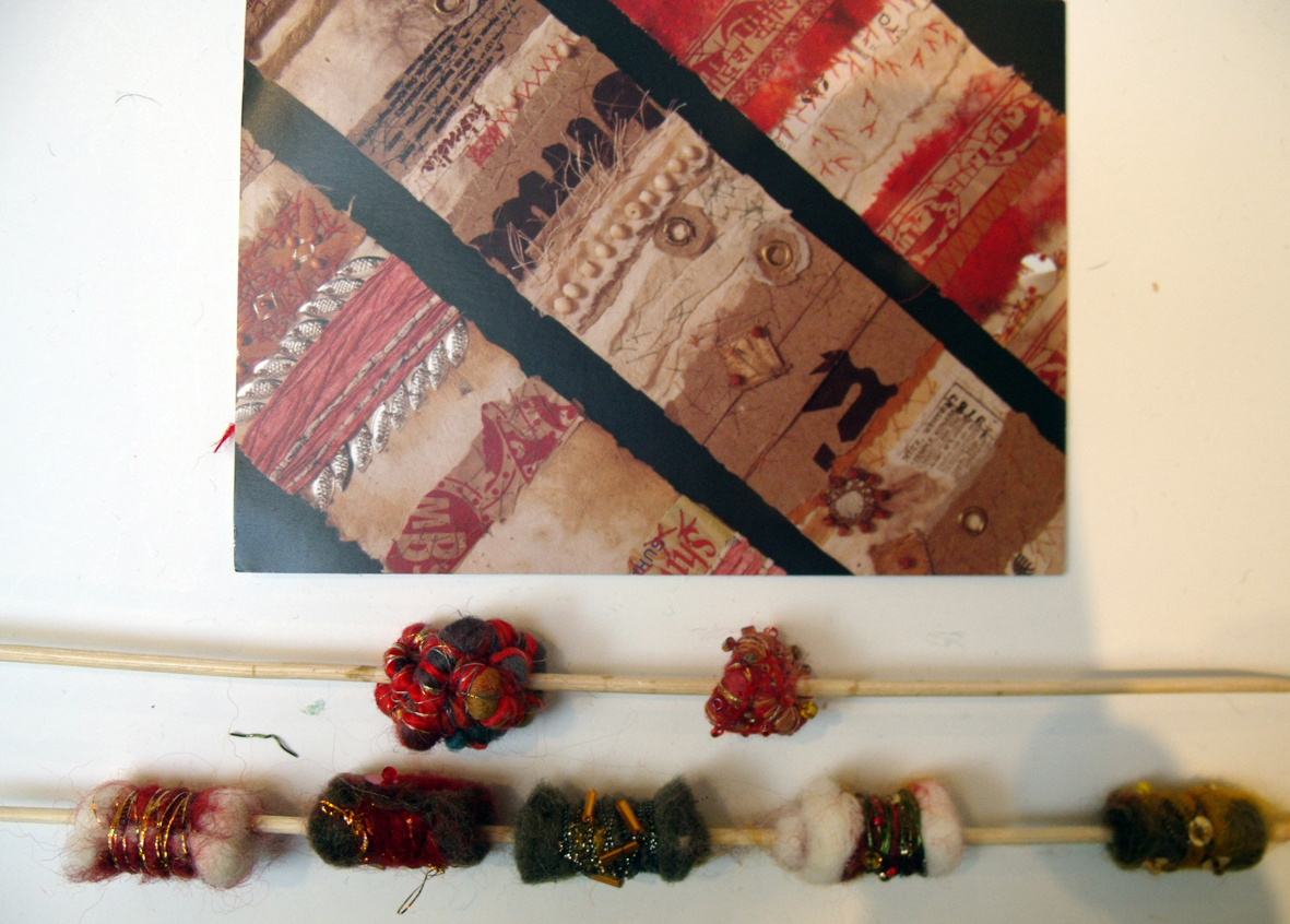 Making the beads is really easy – peasy and  playing with the different scraps of threads ribbons and tiny glass beads is a real textile maker’s pleasure,