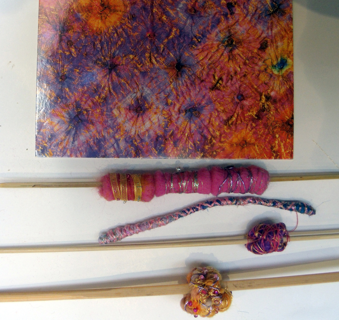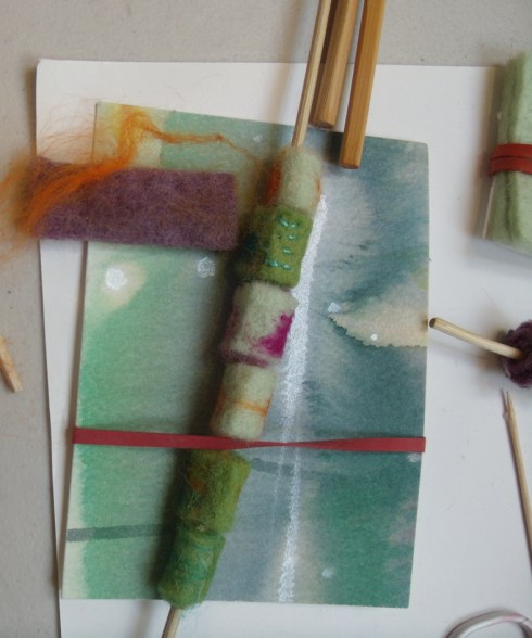 The long felt beads can be made in very subtle shades when they are needle felted first with scraps of fleece.