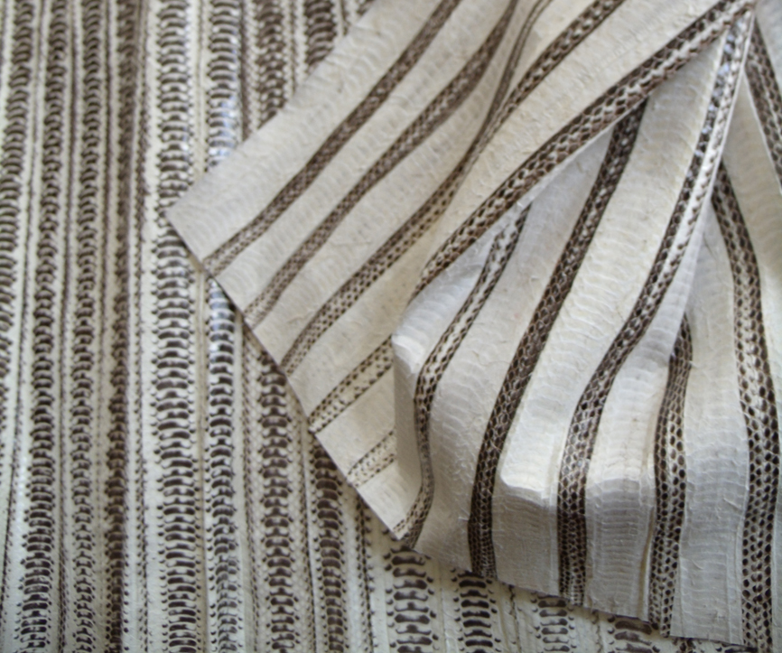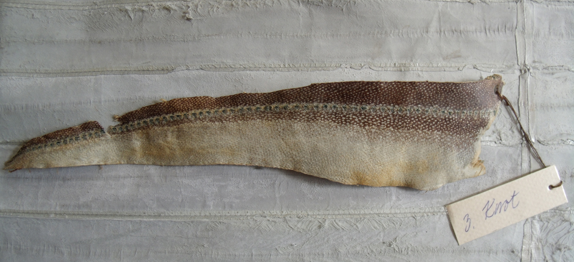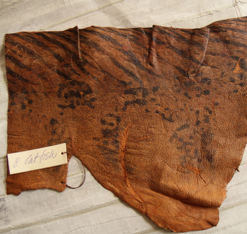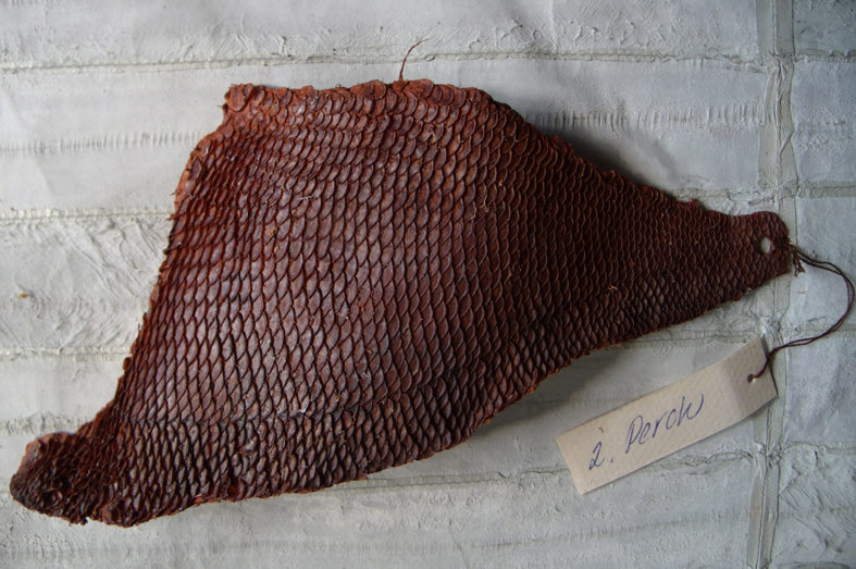 and also some specially hand – tanned skins from Sweden, perch, cat fish, and plaice.