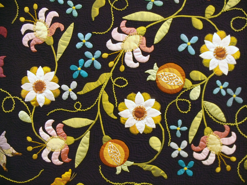 hand applique and stitched winner’s quilt – detail