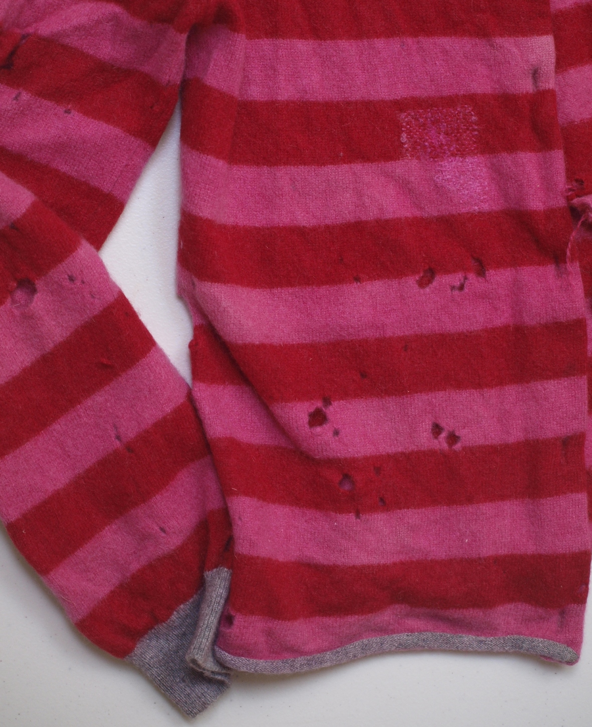 my totally moth eaten cashmere cardigan – but with darning still intact!
