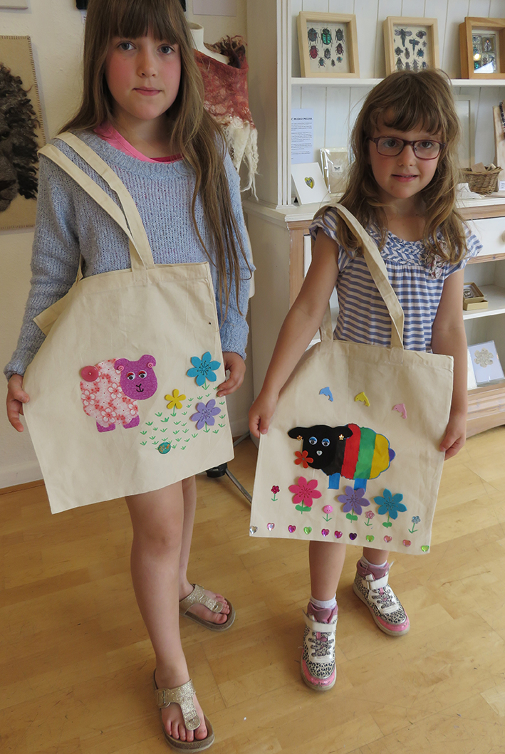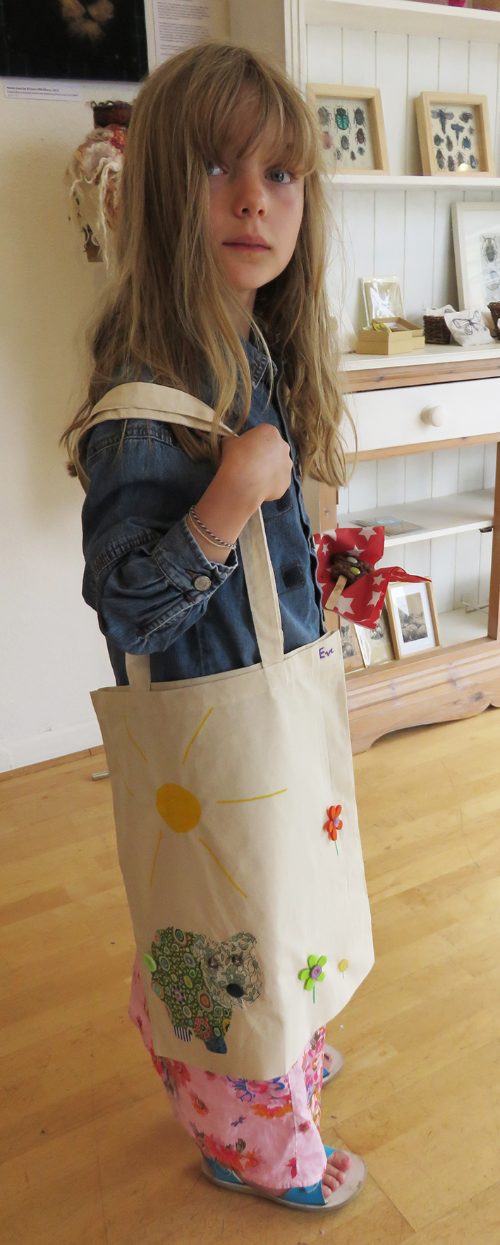 So to add to the funds we once again, by popular request, ran a children’s workshop this time to decorate bags….Paula also helped out with this – I kept well out of the way, just occasionally took the photographs….it looked very lively in the main studio..