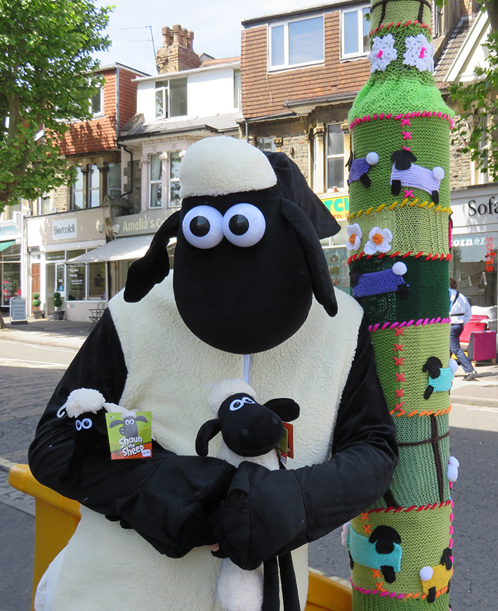 Shaun the Sheep – the popular cartoon character from Aardman Studios, Bristol’s world famous animation company is being celebrated with a series of decorated sheep statues being deposited in a trail throughout Bristol (and London). The local high street community, including Heart Space Studios, has sponsored a sheep sculpture and he arrives in the first week of July….meanwhile Heart Space have decided to welcome him with a knitted yarn bombed lamppost and bunting.