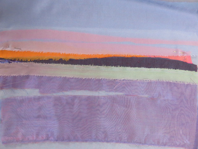 I added the salt marsh fabric, a piece of green and orange shot cotton is the perfect colour of the marsh when the late afternoon sun lights it up in the autumn – the rest of the sky and sea seem purple in comparison.