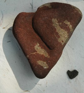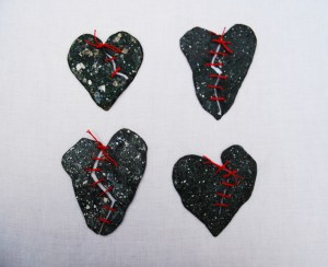 While on my hands and knees trying to photograph the darns on this woolen quilt I found this tiny red heart appliqued in the left hand corner. Now who put that there for whom? I asked myself.