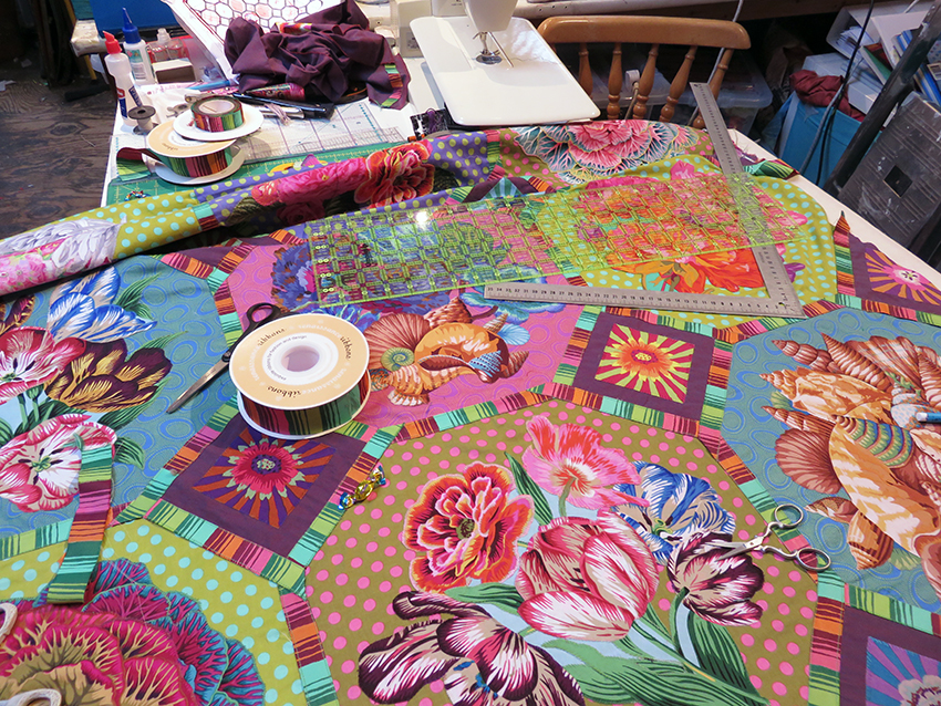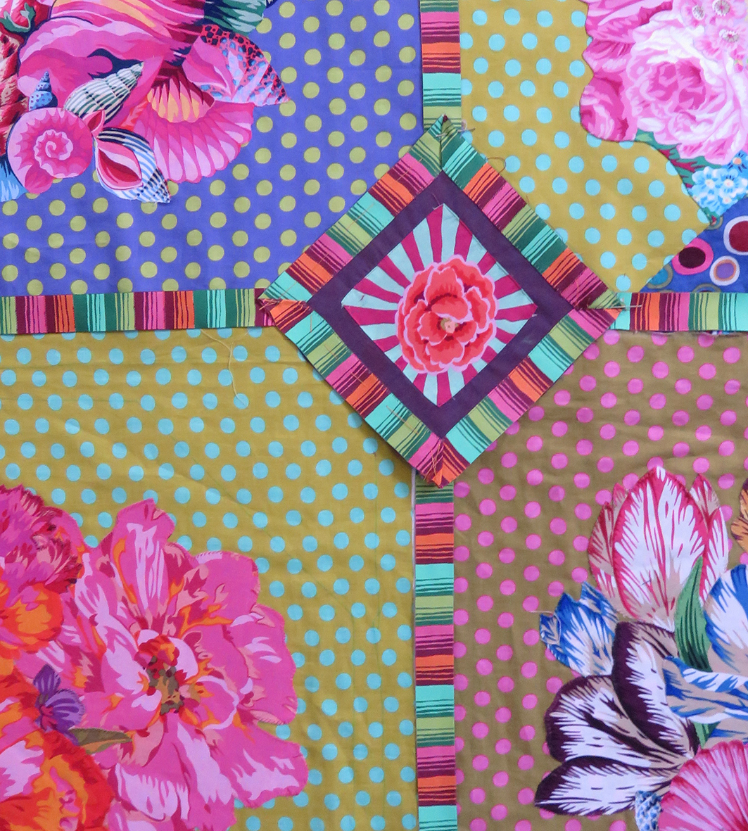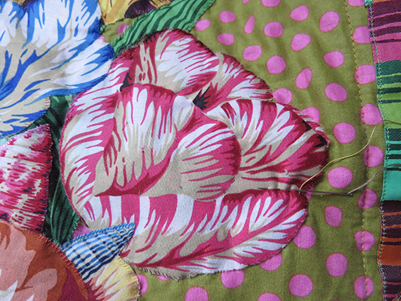 the quilt starts to look like it belongs to Kaffe