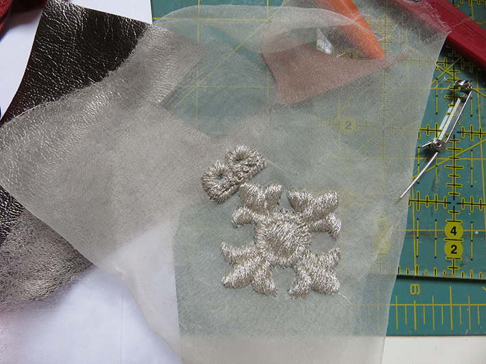 then tracing around places with a water soluble pen, before pressing the whole design into position.