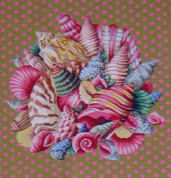 Lillian Delavoryas and Kaffe Fassett and were leading textile designers in the late 1970’s, when I first left college and became a freelance designer and illustrator in the Fashion industry. Influenced, no doubt, by their work I taught myself to hand embroider onto canvas as a way of the easing the frustration of my hectic working life. But my early works were tiny, so when I saw the scale of these pieces I was deeply impressed. Kaffe and Lillian knew one another when they both lived in America and he is responsible for bringing her to the UK, in order for her work to be recognised here.