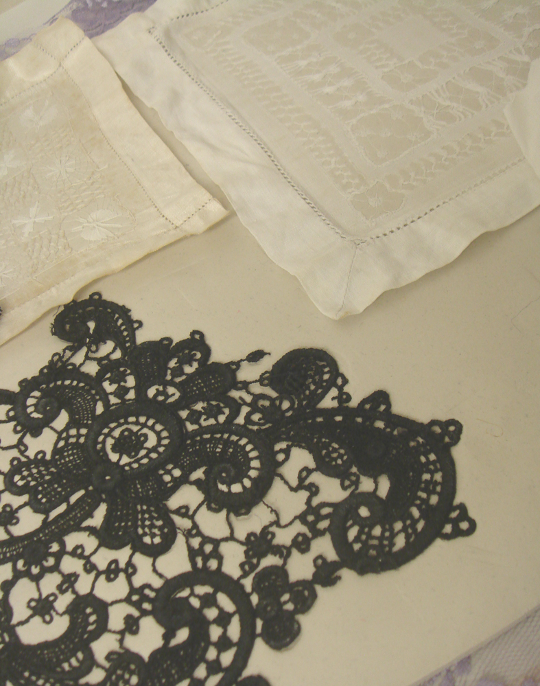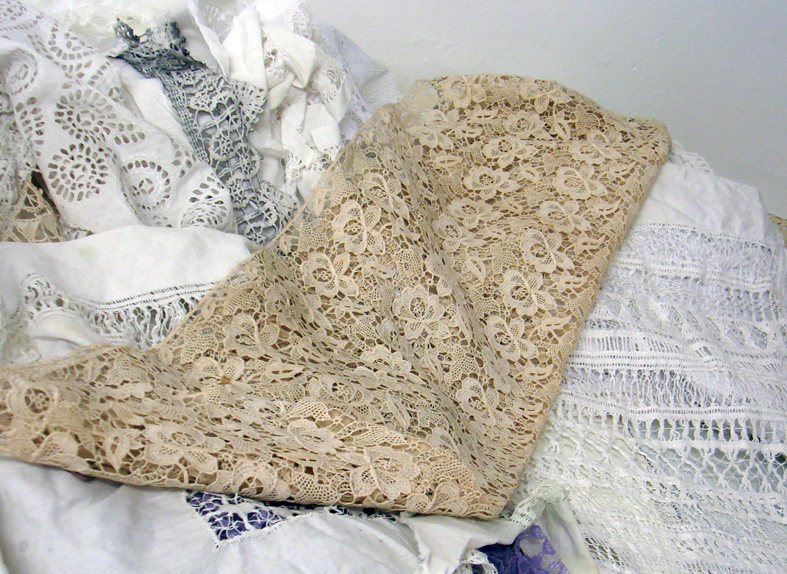 my pieces of damaged vintage guipure lace and drawn thread work