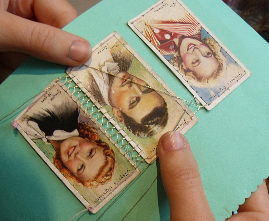 matching the patches ready for decorative stitching.