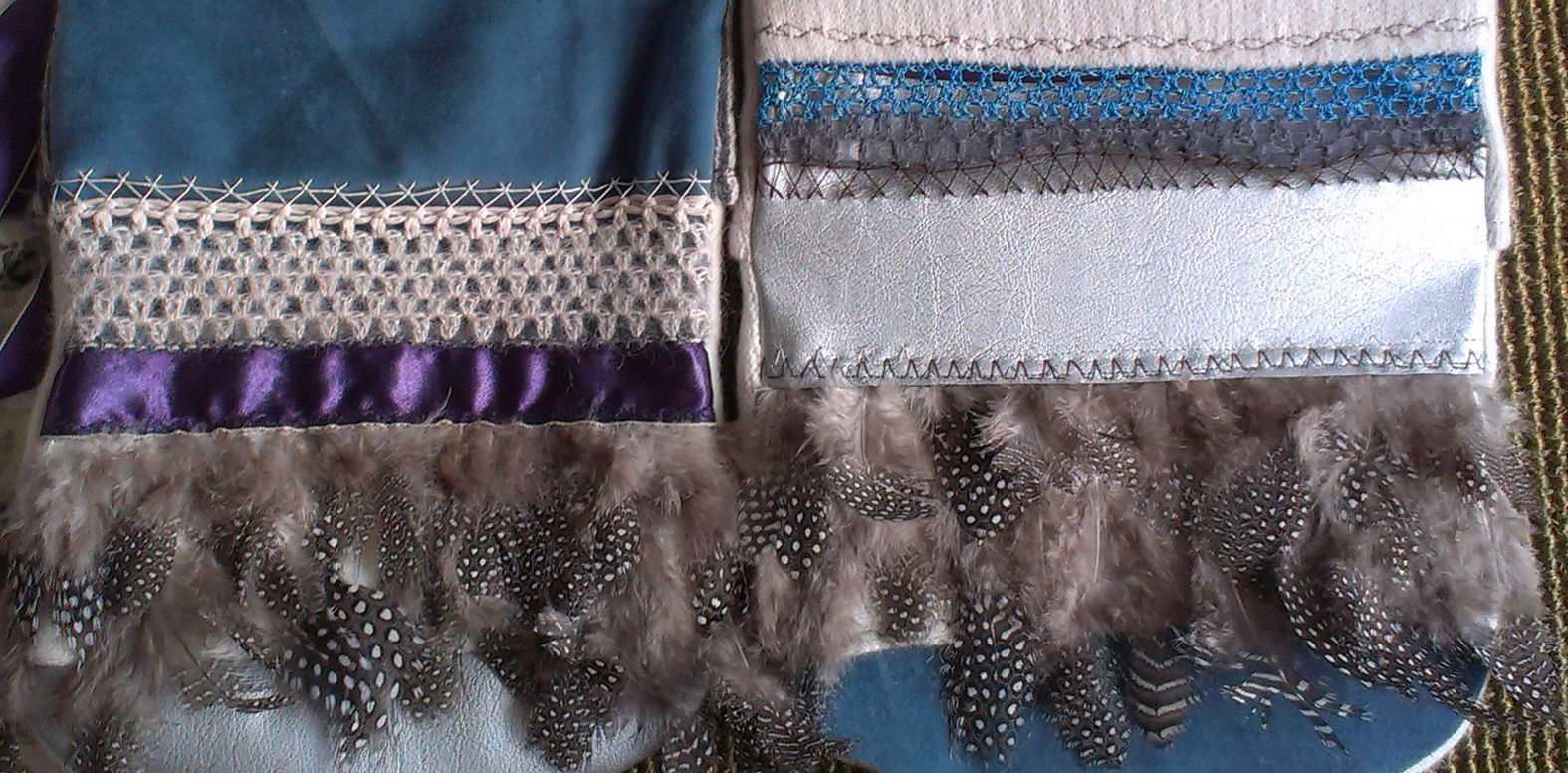 trying out different ribbon fabrics for crazy patchworks