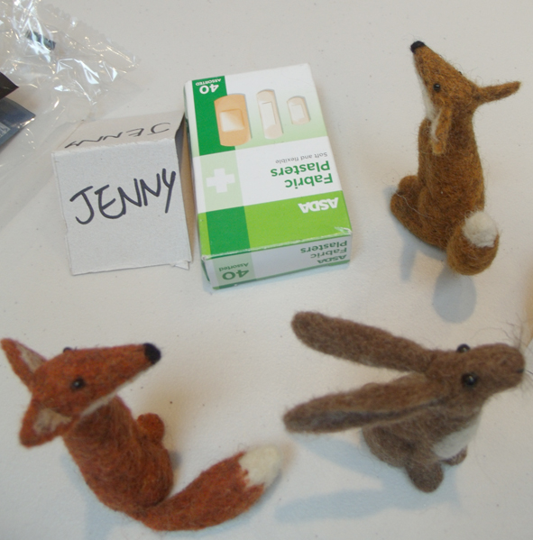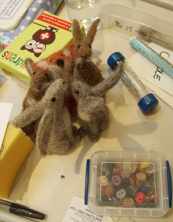 I was very amused though to find this group guarding the necessary packet of sticking plasters – needle felting is not for the inattentive maker.