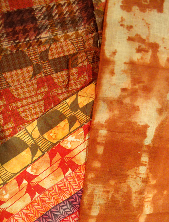Marina printed and patched fabric swatches, based on African batik fabric scraps