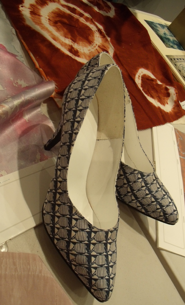and the ultimate indigo shwe shwe inspired print of miniature T.pots for elegant court shoes