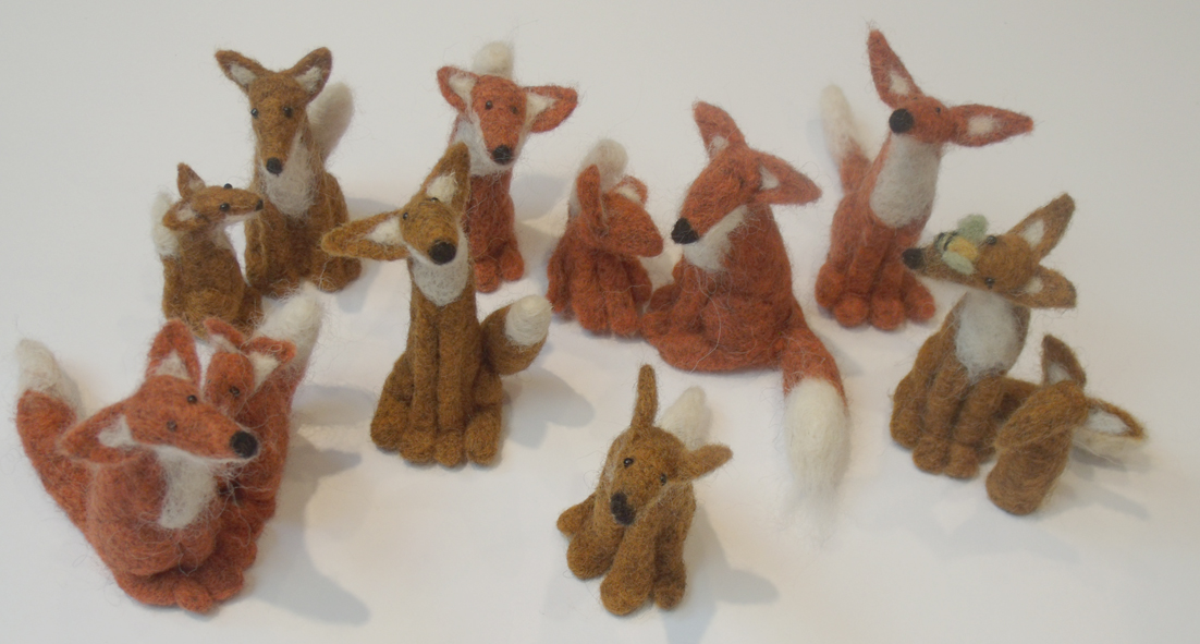 needle felted foxes, the results of the first workshop by Jenny Barnett