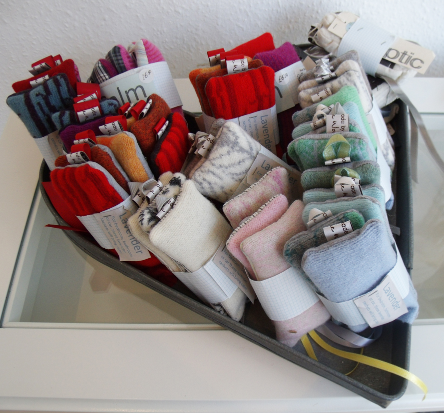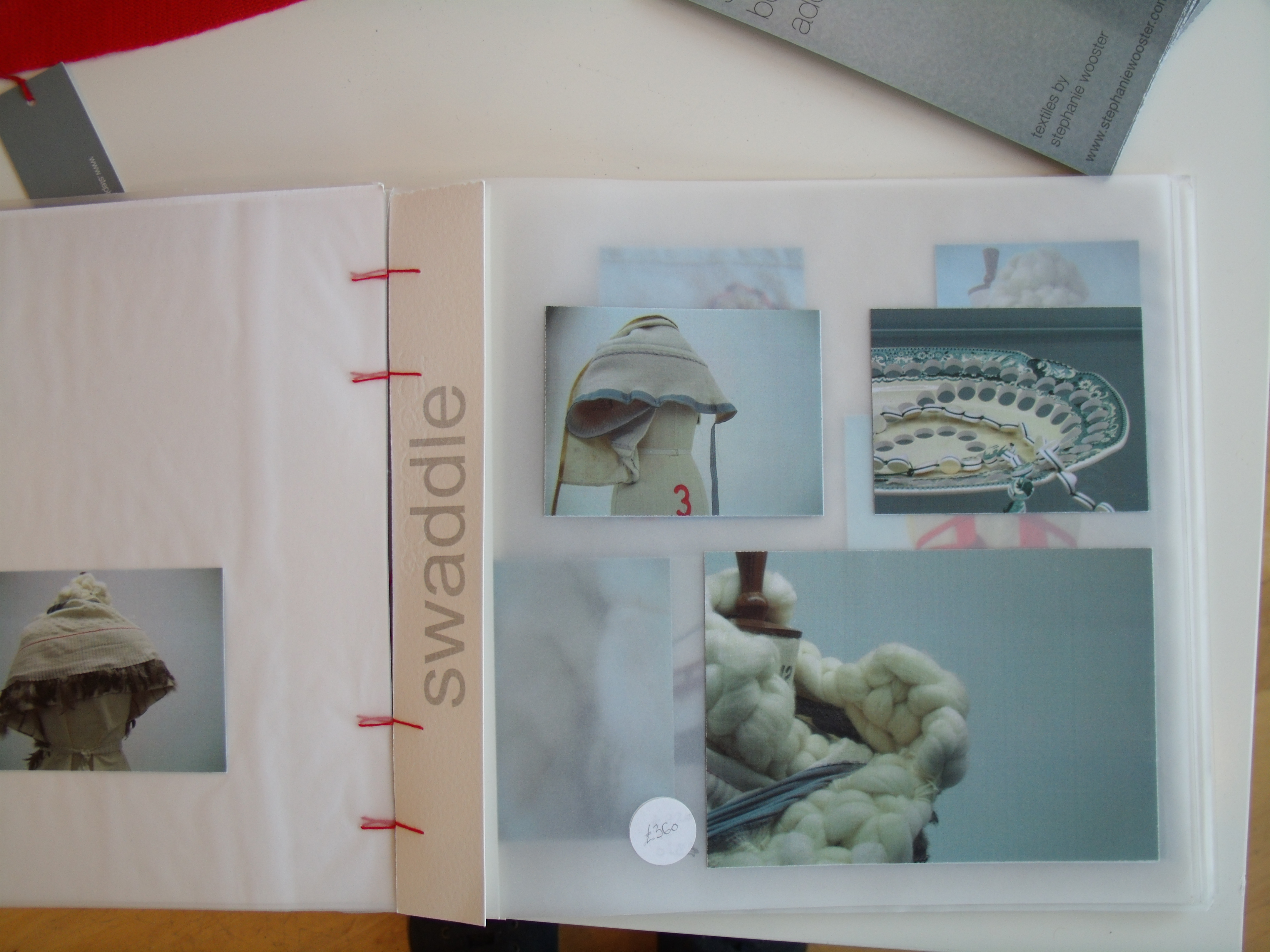 And to prove that sampling really does inspire people here is new work from Steph – the day after the workshop she added some of the sampled techniques and materials to her range of knitted hot-water bottle-covers.
