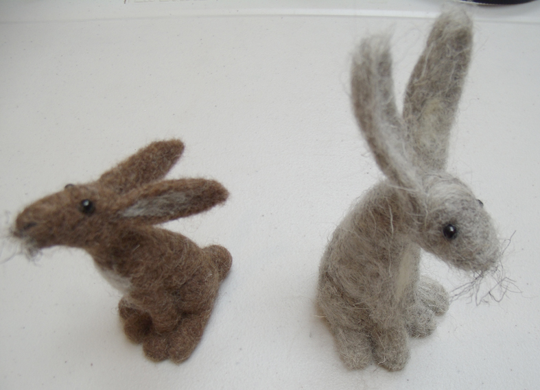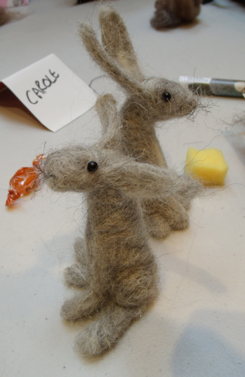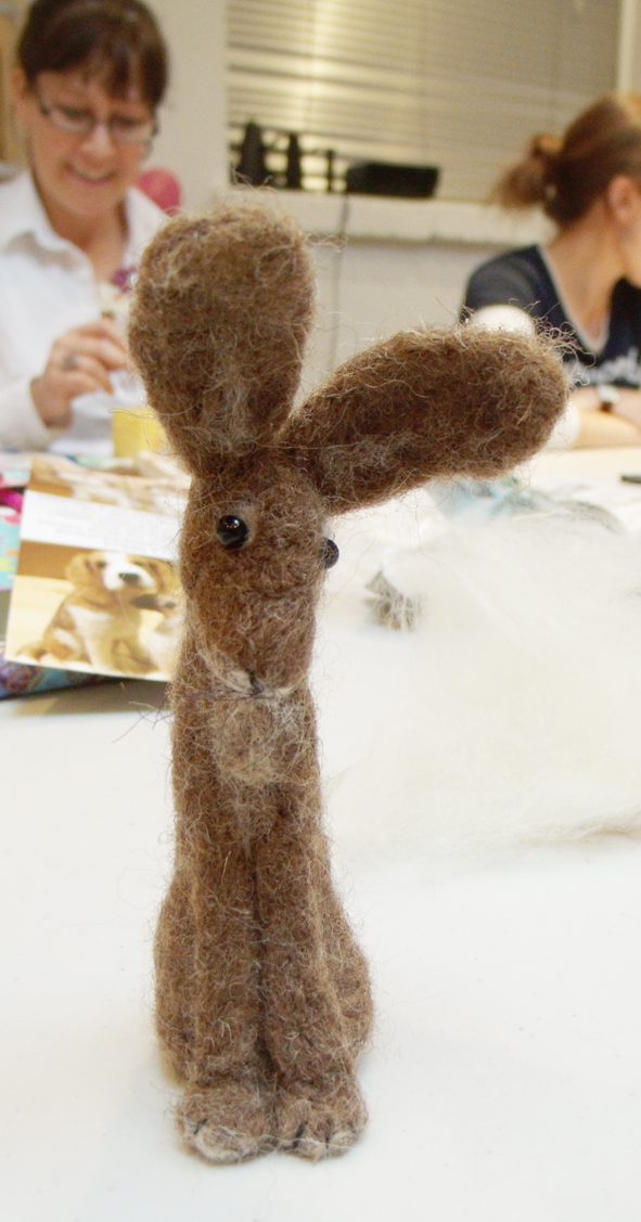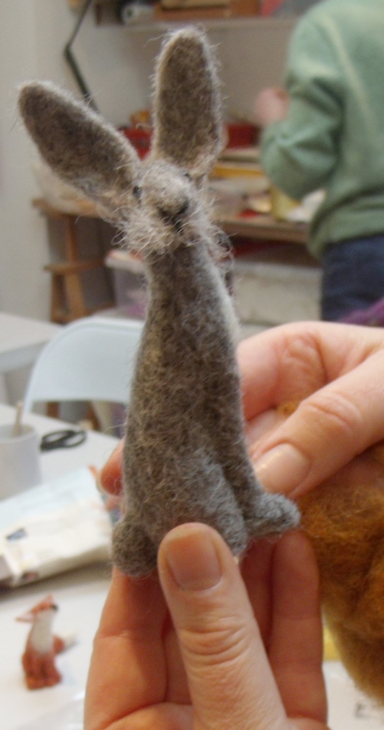 Needle -felting appears to be the most popular form of model making in textiles if the success of the 2 recent classes by Jenny Barnett for Heart Space Studios is anything to go by. Jenny gave her first workshop last month – foxes, and this month, hares……