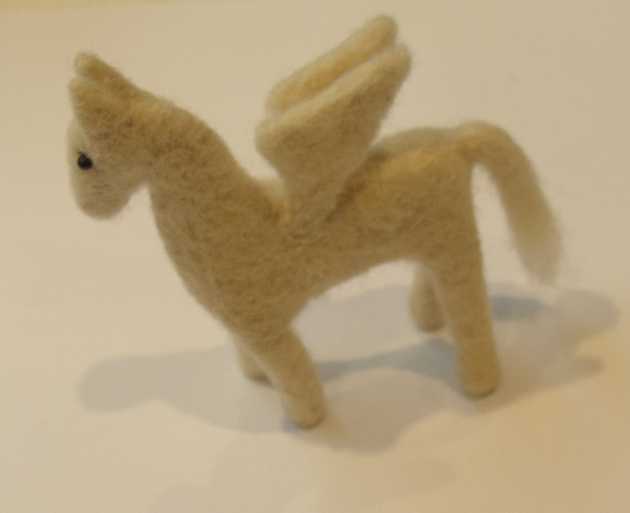 I had asked Jenny to bring them again as I remembered them from her first visit to us last year. I thought that now, having seen her work so successfully with the groups, she should conduct a 2 day Master Class for Heart Space – I had this idea when she brought out a simple winged horse that had broken a dream I have had recently…I wanted to try to make my dream creature ( more of this later, possibly – I often embroider my dreams)
