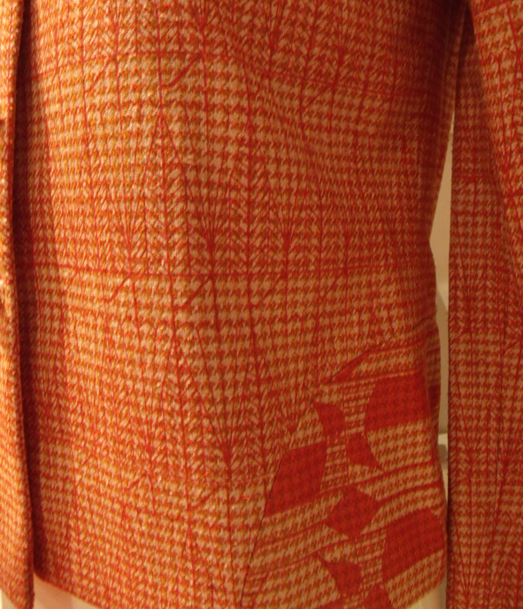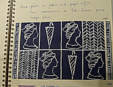 Marina used African printing systems, block prints, batiks and discharge screen printing to pattern the tweeds, and she patterned them with tea cups and saucers, she was very generous in bringing all her research materials, work books and fabric samples for us to study closely.