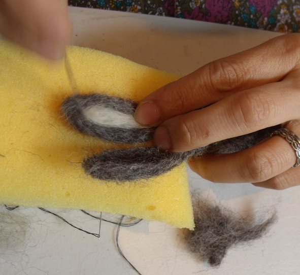 Needle felting is very different to wet felting, this is quick, really quick…the small scale animals take shape in rough form within an hour, the basic characters just seem to be conjured from each maker by alchemy. One minute you are looking at a table full of basic animal shapes, then the heads and ears are modelled separately ready to be applied