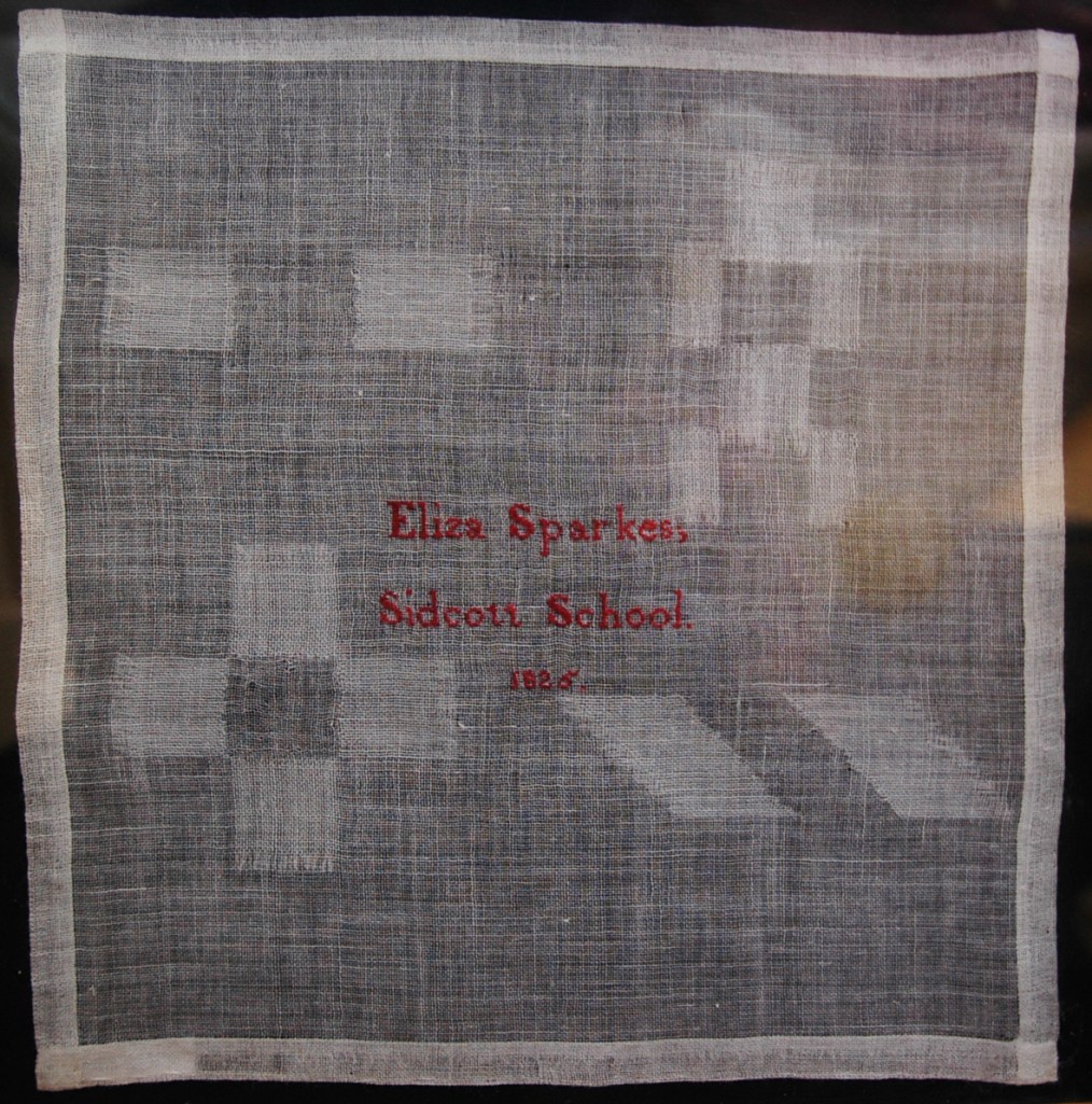 What is noticeable about the plain workmanlike samplers she brought us is that they are made in schools, the young girls who stitched these were learning useful techniques which would stand them in good stead in the future, either for running their own households of serving in someone else’s.