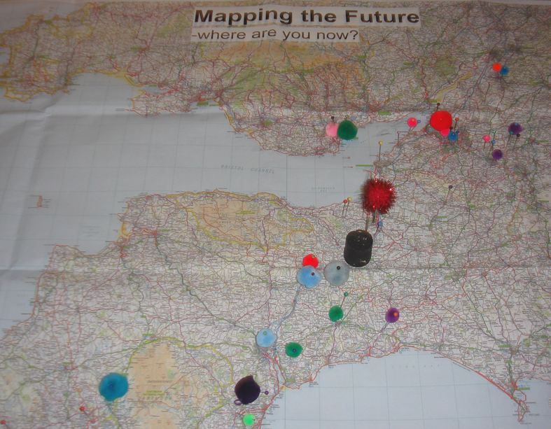 The mapping project was a good opportunity to show everyone present just who was near to them within the south west – the big pompom in the middle is Taunton where the conferecne was held about the centre of the whole region. there was a whole pom pom vibe throughout the day – to find out more go to our TFSW website