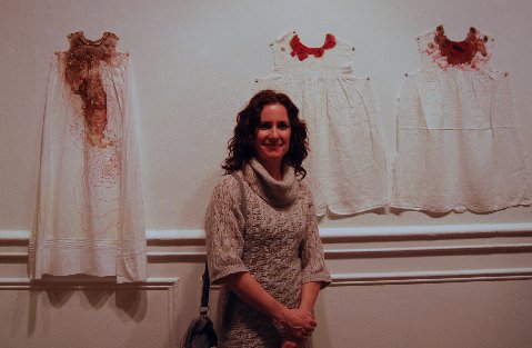Dawn Mason, hanging her newest pieces – cotton organdie