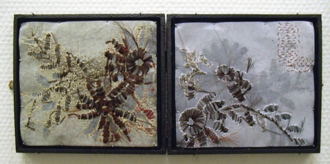 Dawn Mason exhibited a series of different responses to the mending samples, called Face to Face her work reflects the reverse side of the samplers, some how when we look at the ‘wrong’ side of a piece f stitched work it seems much more immediate, the involvement of the maker is more apparent because here we see the comings and goings or the threads and often the struggle the maker has had is left as evidence where on the front of the work all is perfectly presented and correct. (I know that given the opportunity people usually will look at the back of any stitched work – maybe searching for signs of the maker’s involvement )